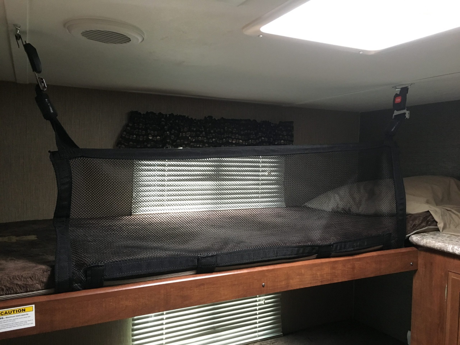 Traveling across the country in an RV can be one of the most exciting memory making events in ones lifetime. Having a child injured during a vacation by rolling out of bed at night can make memories you weren't wanting to make. Tuck the worries to bed with the OrganizedObie Bunk Bed Safety Net. Handcrafted right here in the United States using double stitching and ultra strong nylon netting material, it will keep even the most restless of sleepers safe and sound.